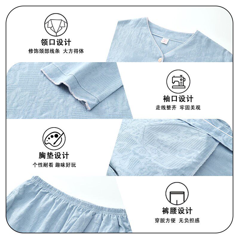中老年人造棉睡衣女士夏季全棉绸短袖套装绵绸妈妈装加大码家居服