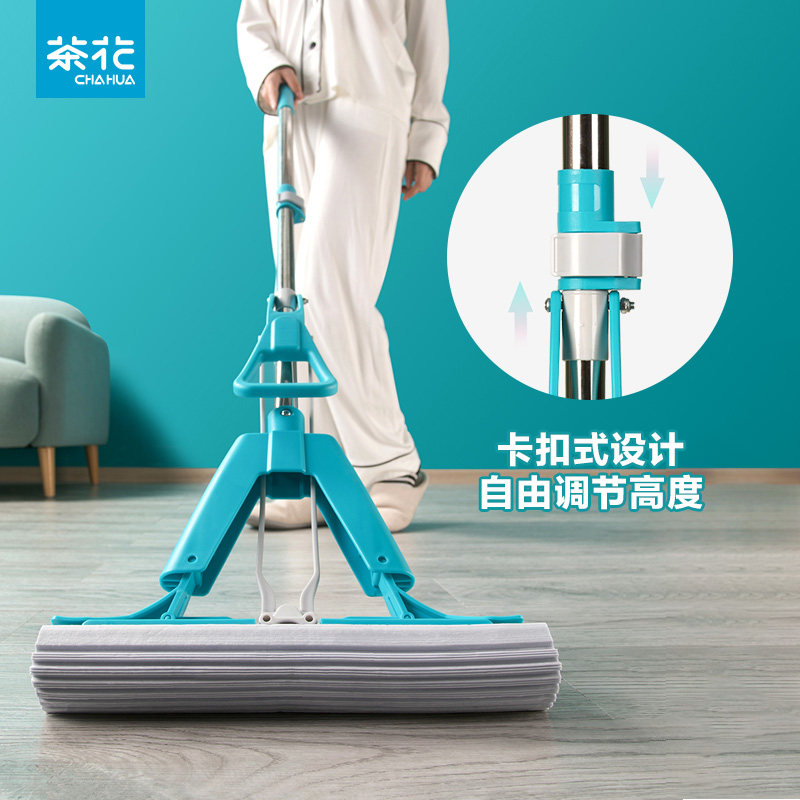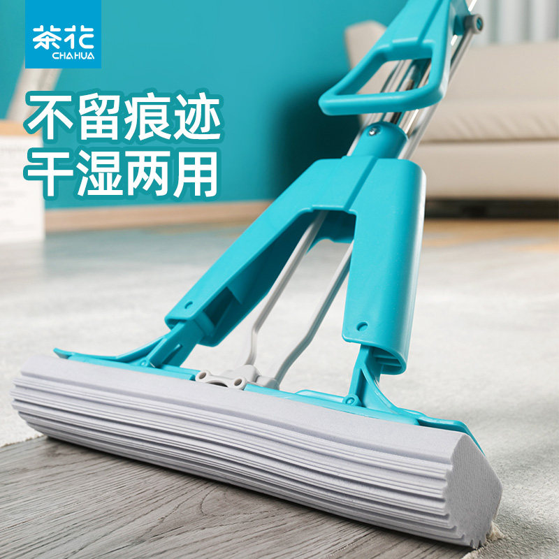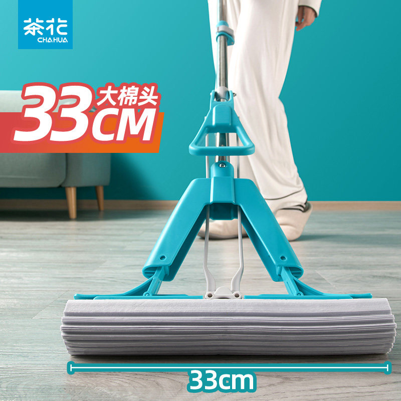 茶花海绵拖把家用一拖净干湿两用对折挤水免手洗客厅大拖把替换