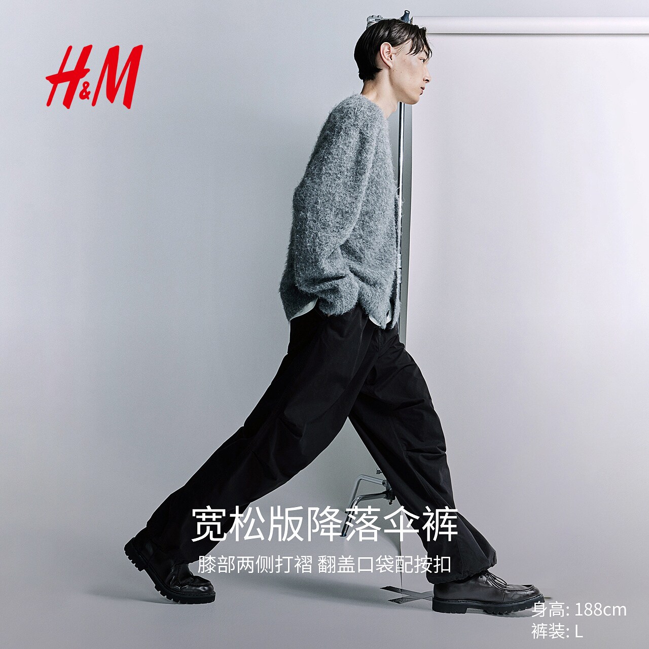 HM男装休闲裤春季伞兵阔腿裤时尚宽松版型松紧腰运动裤1242269