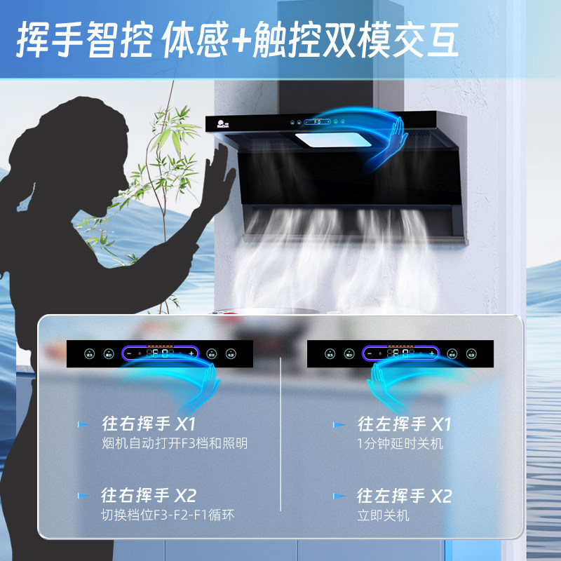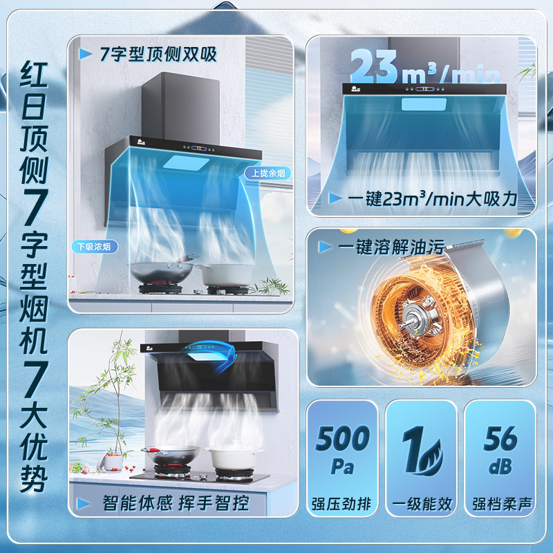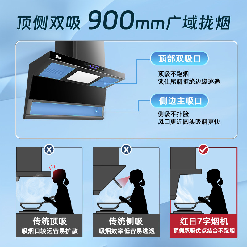 红日抽油烟机厨房家用大吸力吸烟机顶侧双吸7字型自动清洗LEU30H
