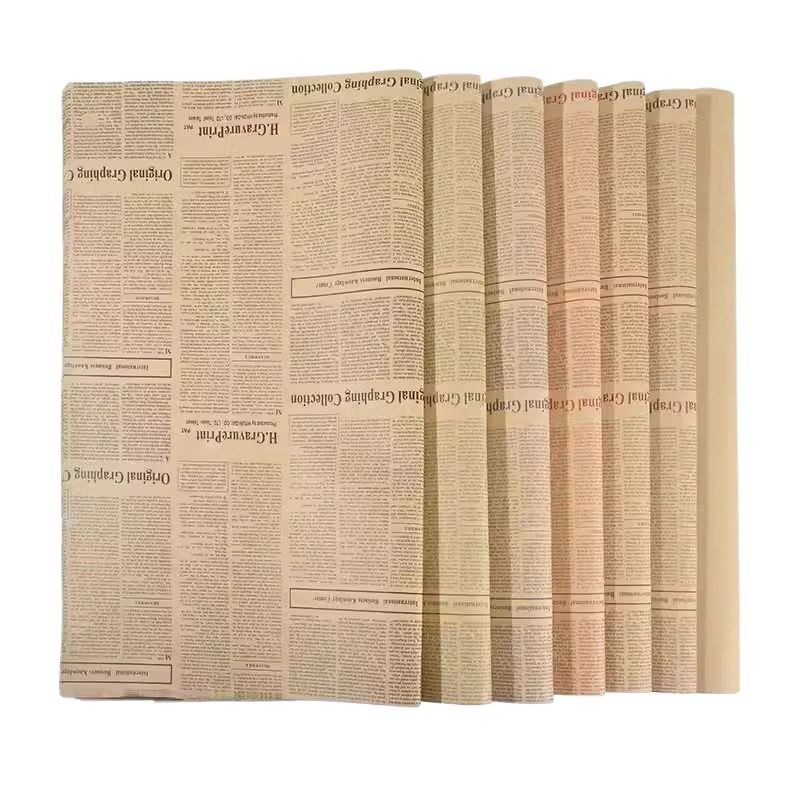 牛皮包装纸花束鲜花礼物纸儿童生日礼品盒材料包礼盒复古书皮纸英文花纸大尺寸包书纸礼品纸批发包花丝带