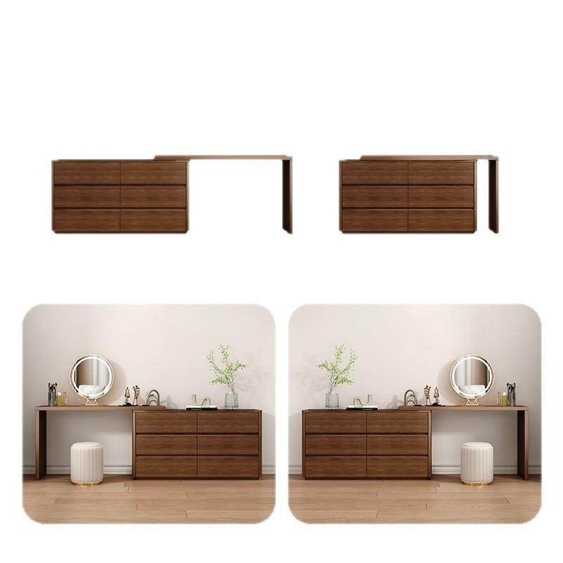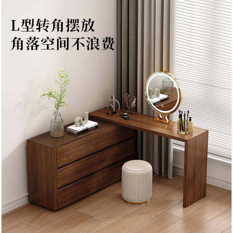 新中式实木梳妆台斗柜一体小户型卧室床尾收纳柜可伸缩化妆桌书桌