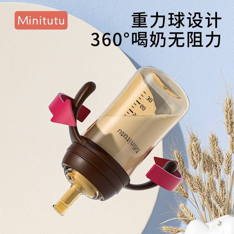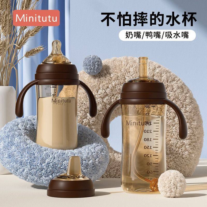 Minitutu儿童水杯纳米银PP奶瓶婴儿学饮杯直饮0-3岁吸管鸭嘴宝宝