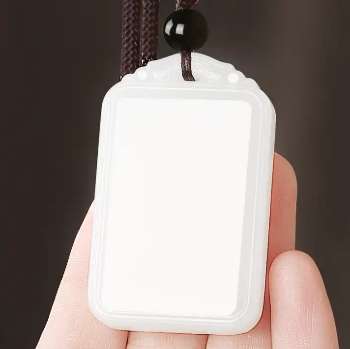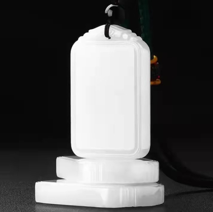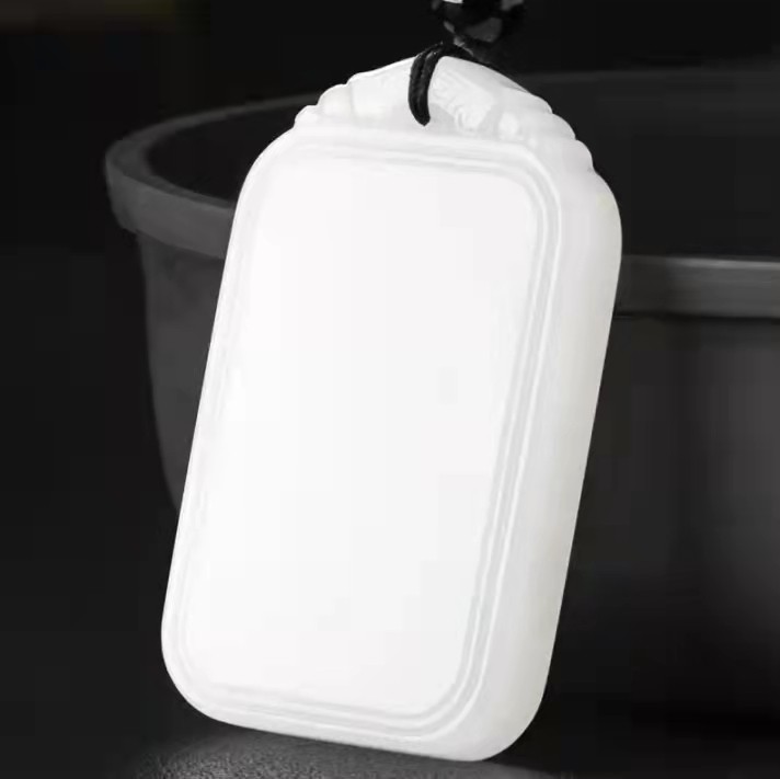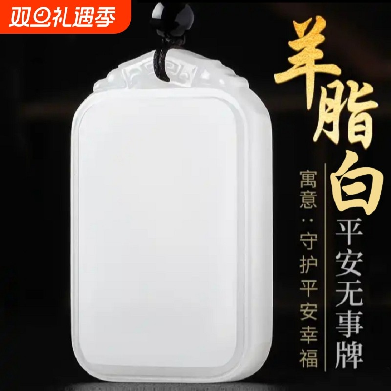 【送证书 】新疆和田方解石玉羊脂白平安无事牌吊坠男款玉石项链