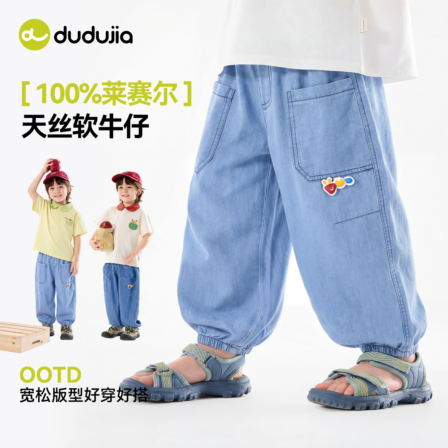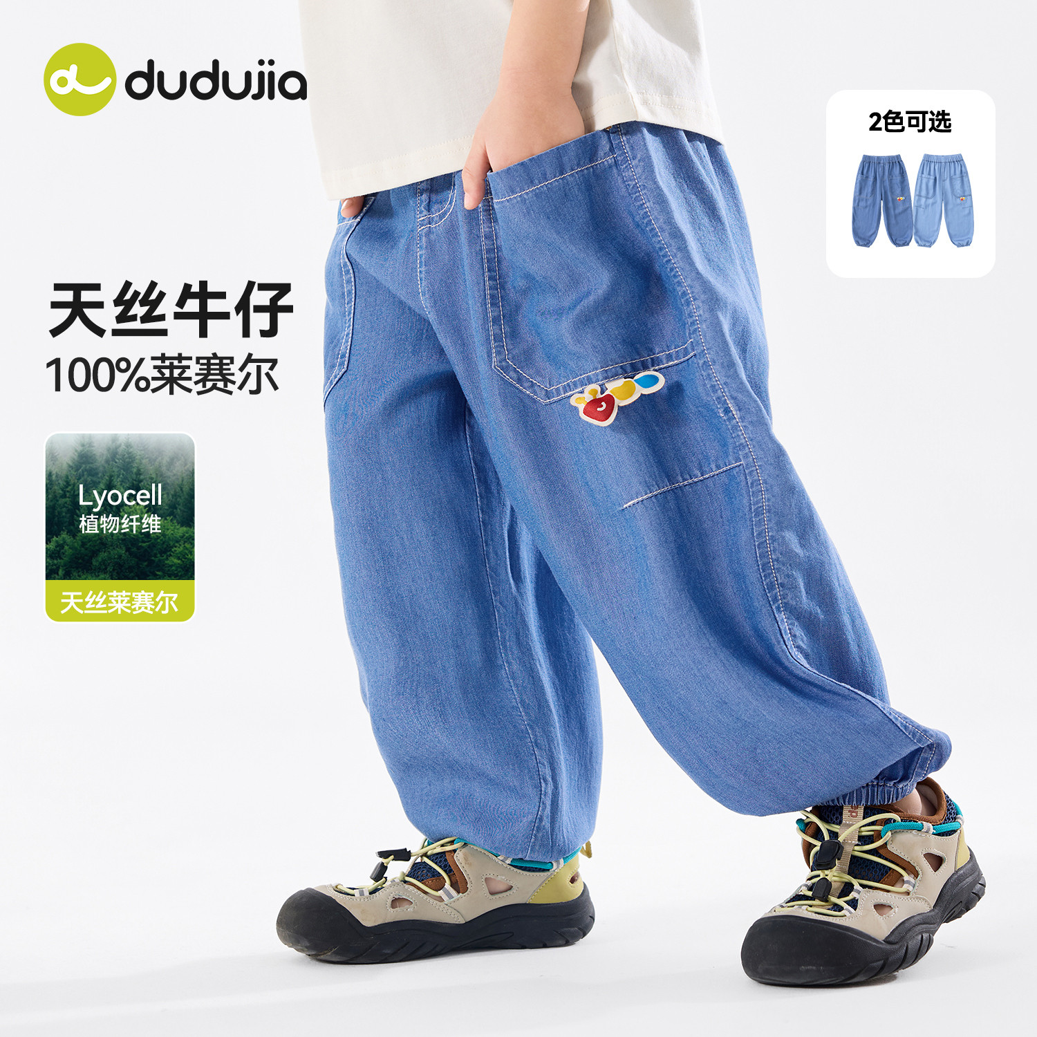嘟嘟家男童裤子夏款宝宝长裤莱赛尔儿童牛仔裤女童夏季物理防蚊裤