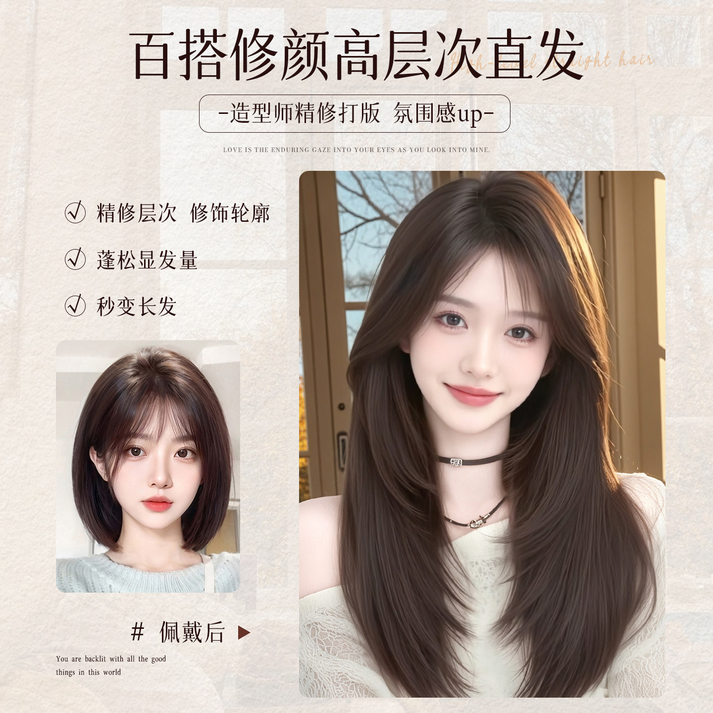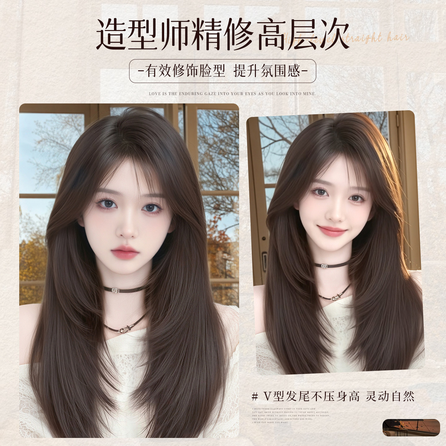 假发女全头套自然仿真发假发套中分高层次长直发丝蓬松前额斜刘海
