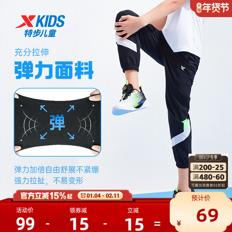 特步童装男童速干裤儿童长裤2025夏季新款大童防蚊裤薄款运动裤子
