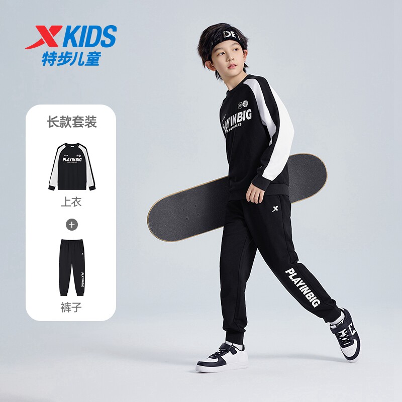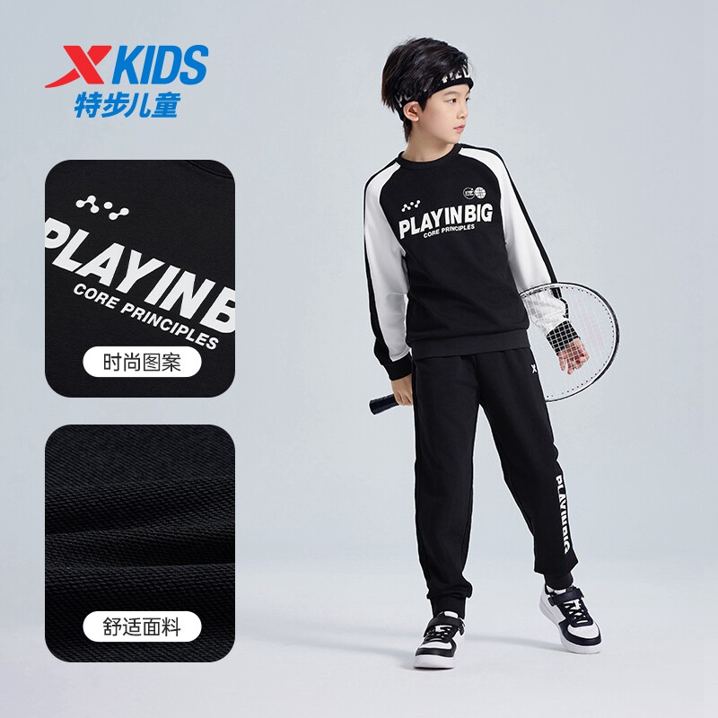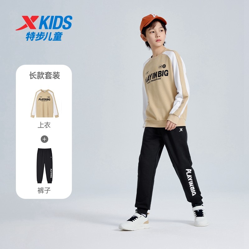 特步童装儿童秋运动服男童舒适长袖针织套装女童简约上衣百搭裤子