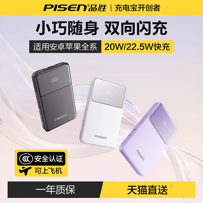 【3C认证充电宝】品胜充电宝20000毫安大容量自带线小巧便携10000mAh超级快充适用于苹果华为官方旗舰店正品