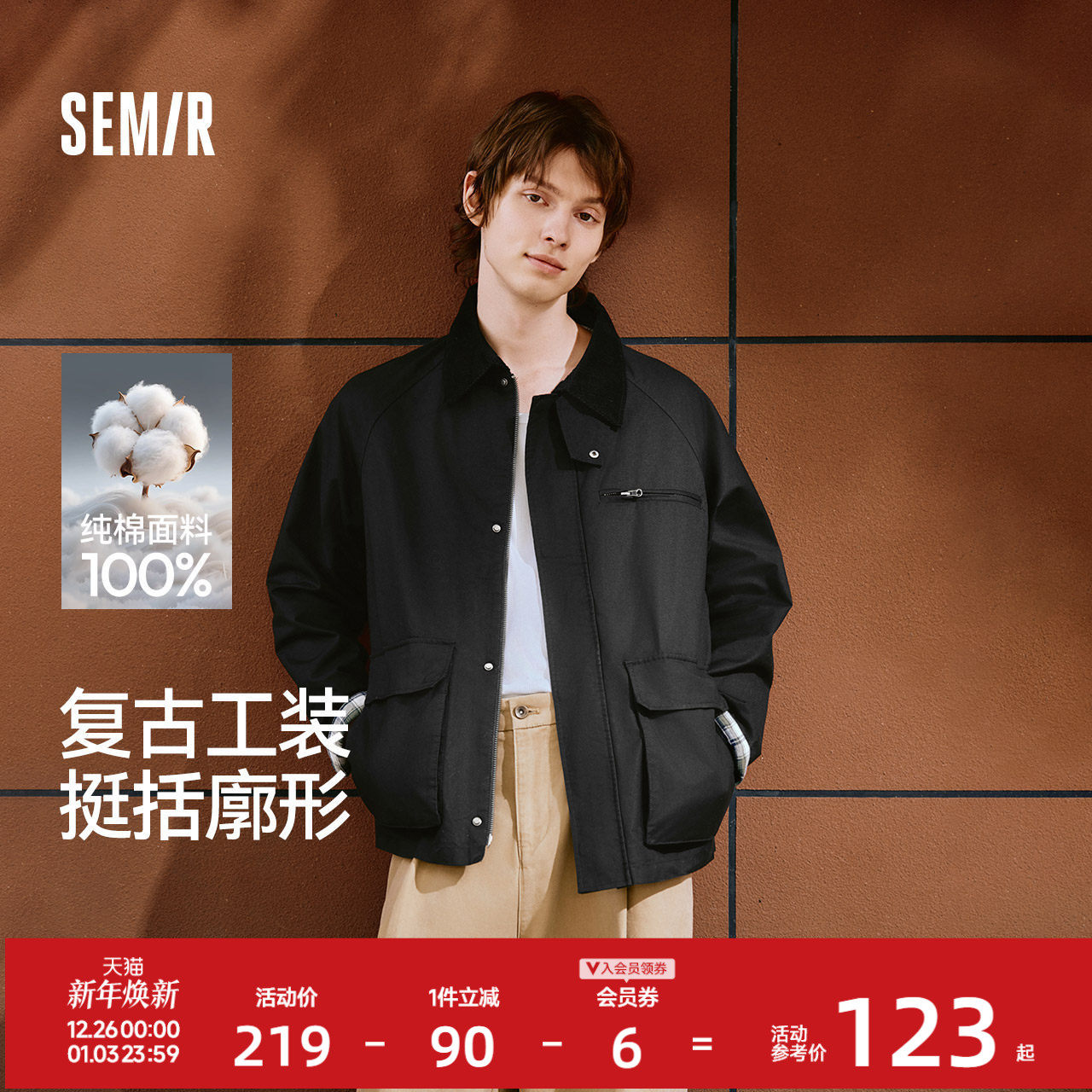 森马英伦风工装外套男2025秋季复古上衣灯芯绒翻领夹克男女同款