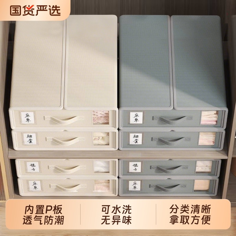 天山棉麻收纳筐衣柜收纳整理分层神器PP板可水洗衣服储物盒收纳箱