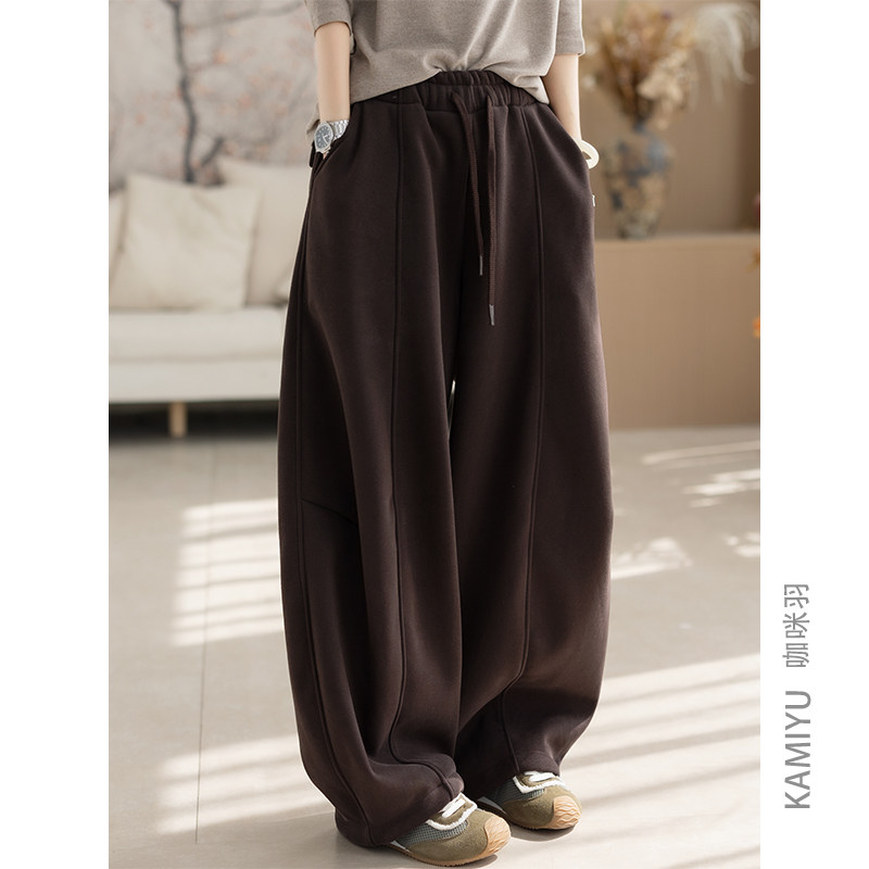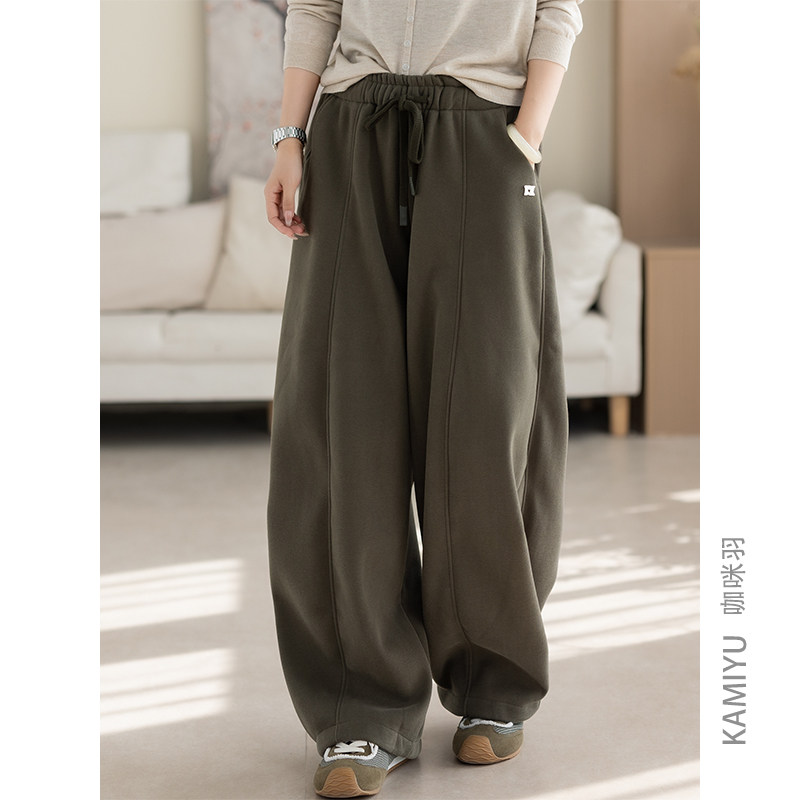 咖咪羽弯刀裤女秋冬新款加绒加厚女士百搭宽松女装运动休闲裤女