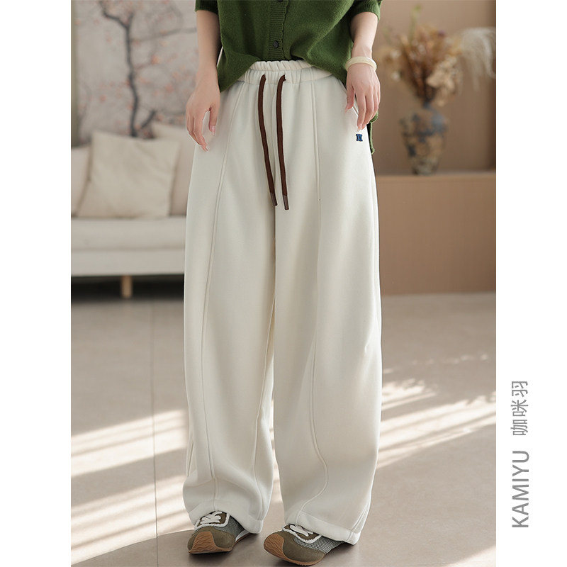 SIINSIIN加绒卫裤女2025新款阔腿运动裤休闲长裤冬季白色直筒裤子