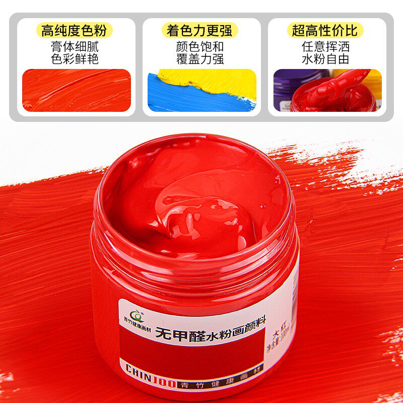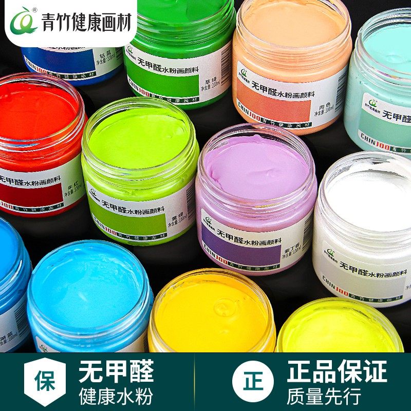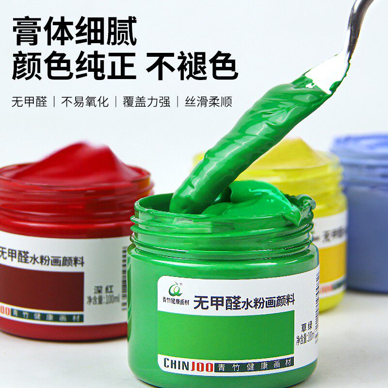 青竹水粉颜料100ml黑板报专用瓶装初学者罐装套装儿童学生用大瓶钛白色36色组合画画工具色彩水彩chinjoo颜料
