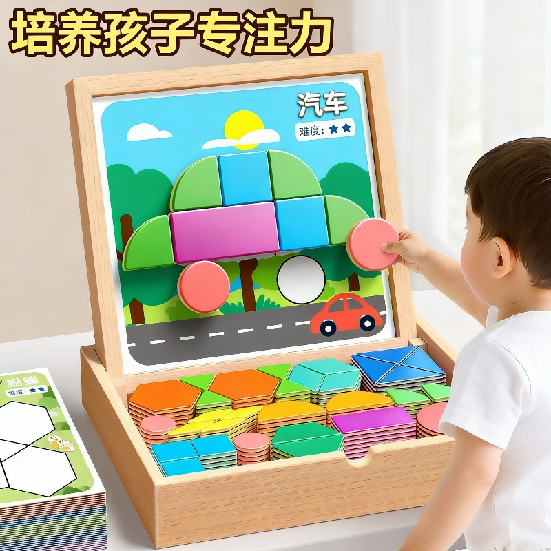 磁性几何拼图七巧板幼儿园学生男女孩力拼图早教积木拼装拼图玩具