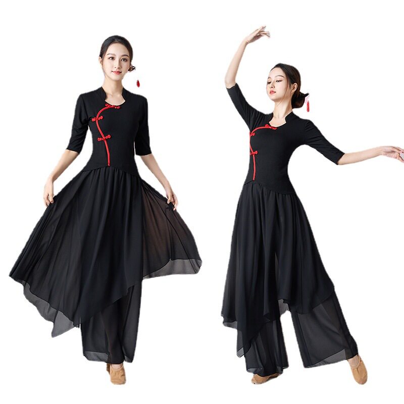 广场舞服装国潮古典舞民族舞练功舞网纱衣长裙裤演出服套国潮风