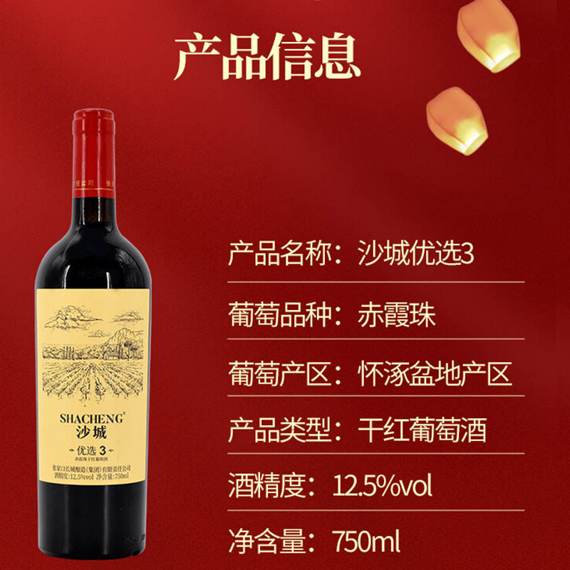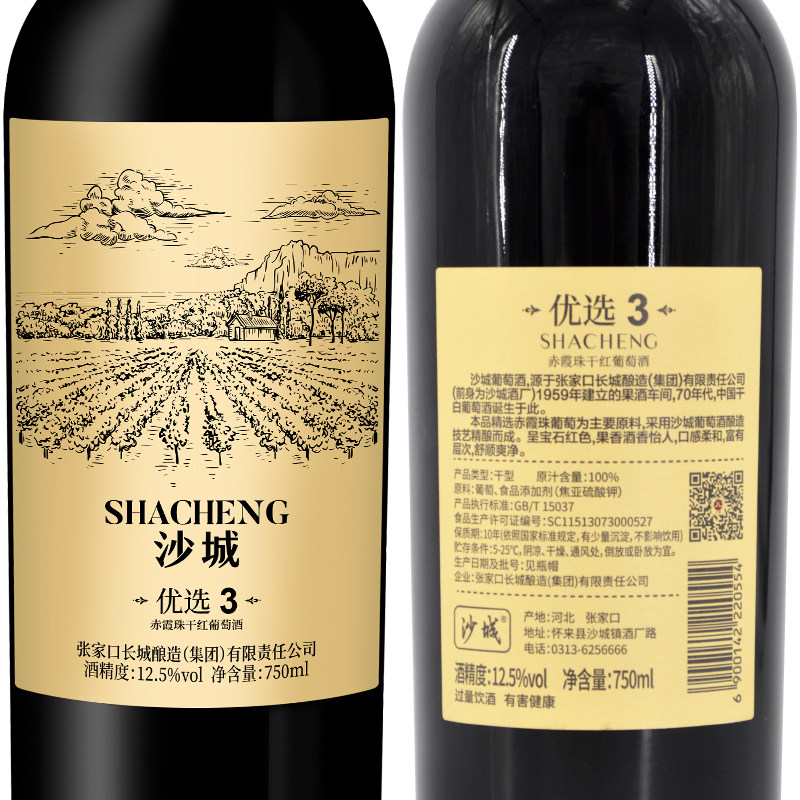 沙城长城酿造赤霞珠干红葡萄酒优选3纯酿原汁原味国产12.5度