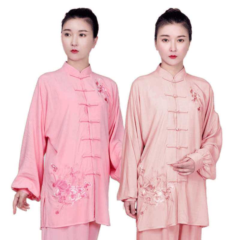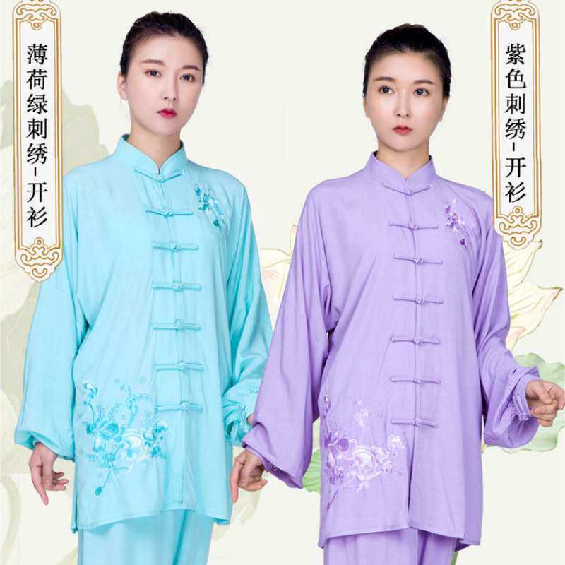 太极服女短袖春秋夏季亚麻棉麻新款刺绣太极拳服装练功服男