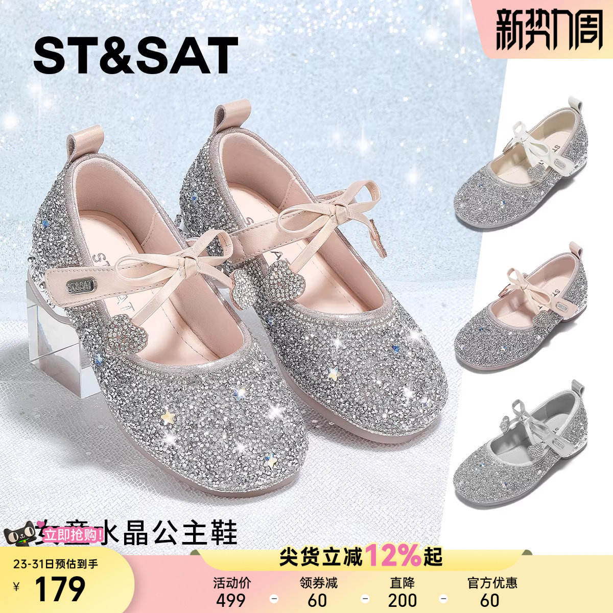 星期六童鞋女童高跟水晶公主鞋春秋季新款女孩公主鞋儿童演出鞋子