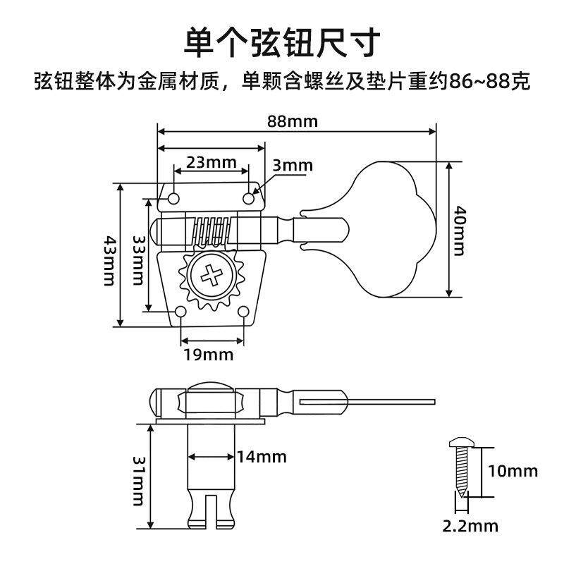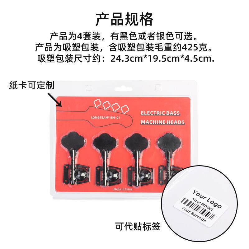 大梅花头4颗装黑色银色开放式贝司弦钮电贝斯卷弦器全金属弦准