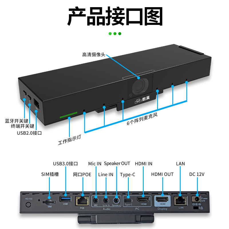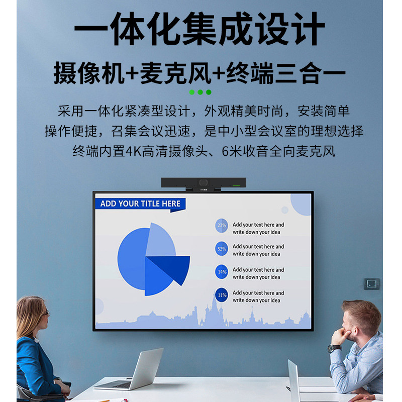 数真视频会议室解决方案 一体化视频会议终端HTE10N内置4K高清摄像头120°广角 6米收音全向麦克风