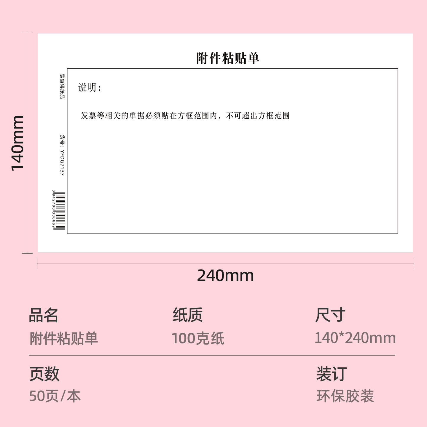 140*240报销单据粘贴单原始附件黏贴封面报销审批费用报销单定制