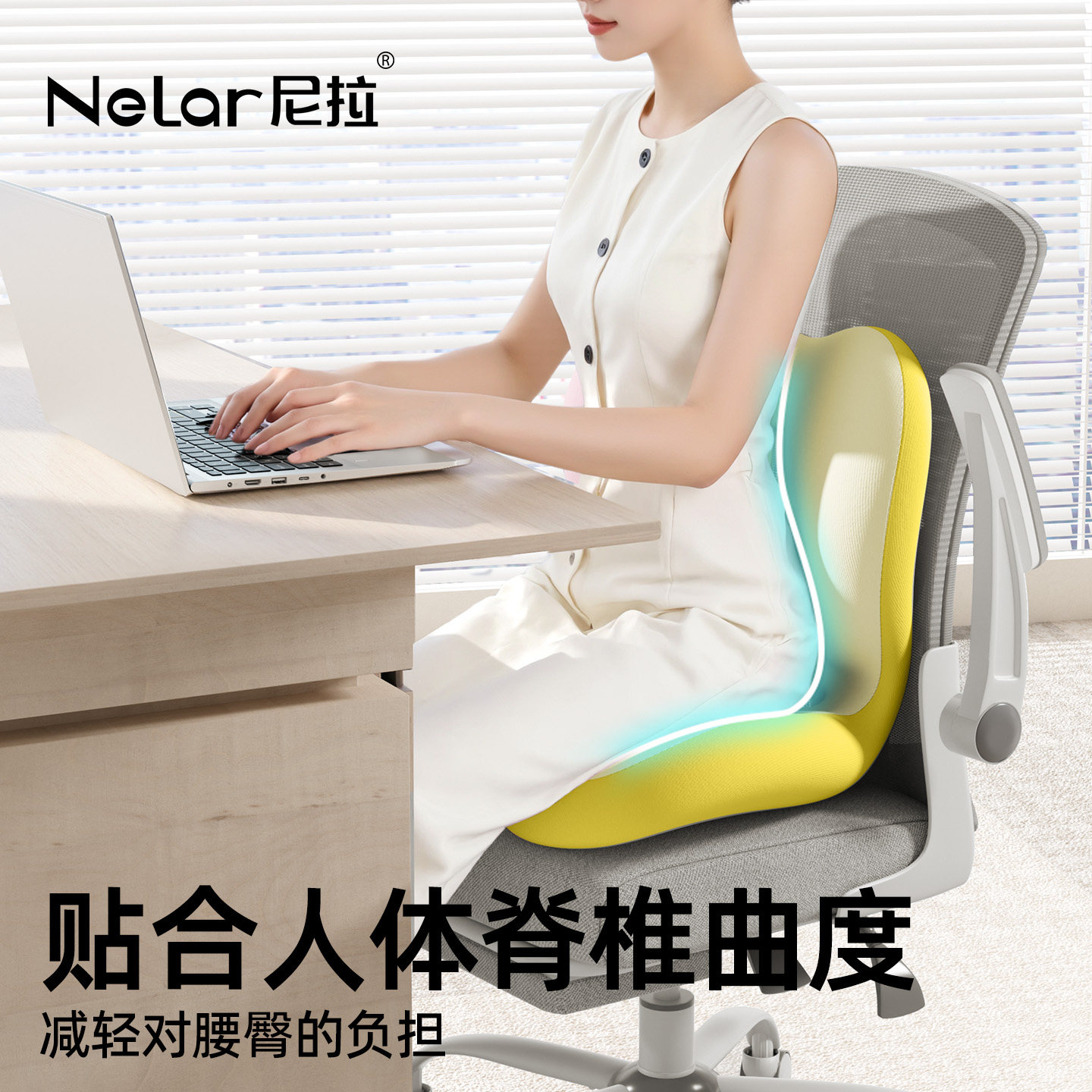 尼拉护腰靠垫久神器人体工学办公室座椅腰部支撑靠枕一体坐垫靠背