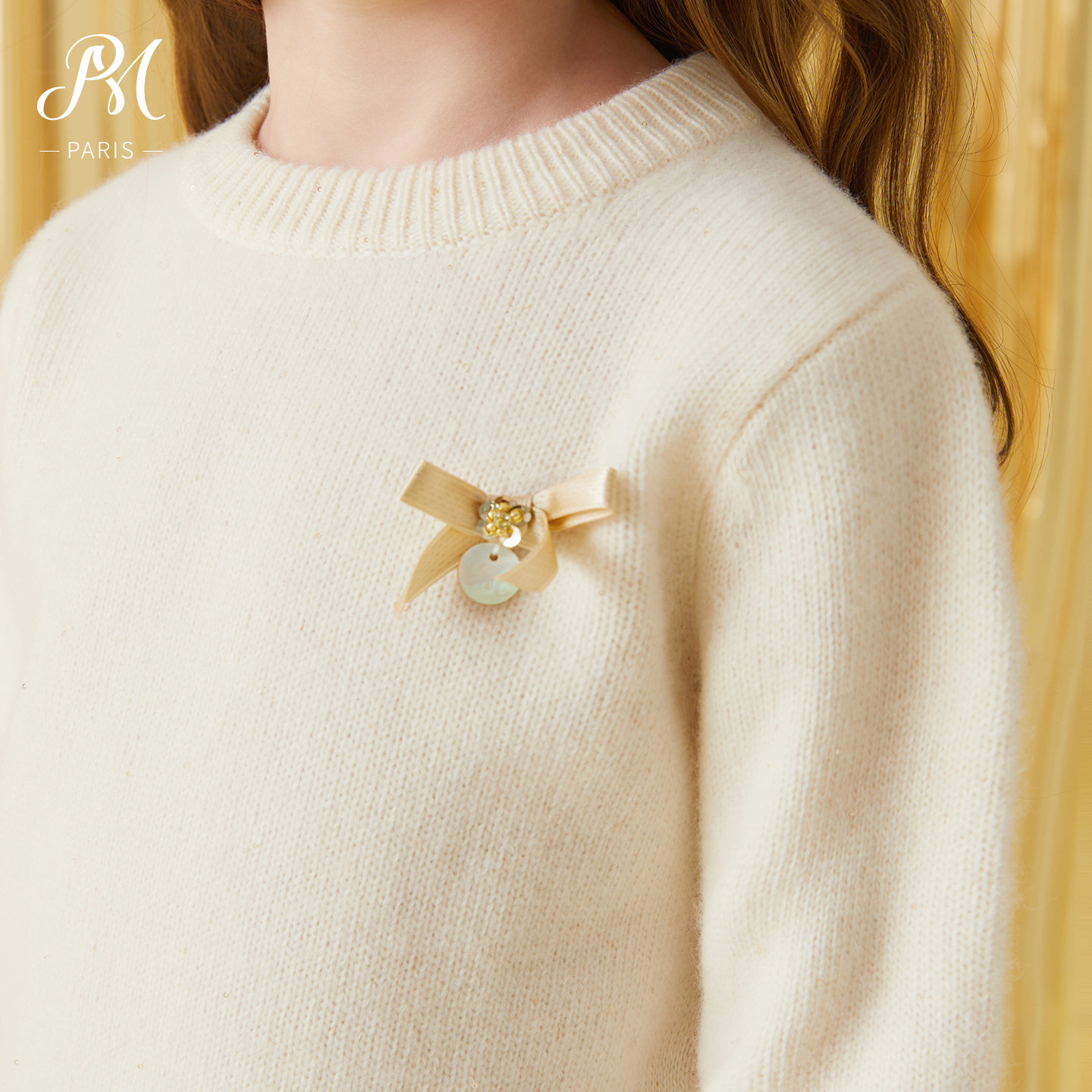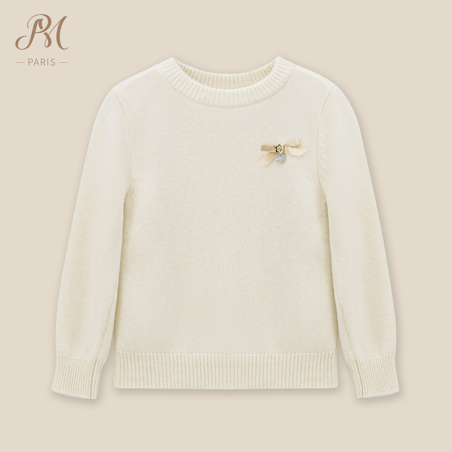 Petite Marguerite小雏菊童装·米白色圆领针织衫