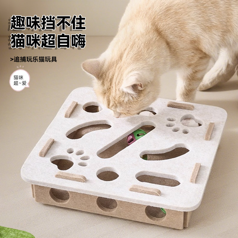 猫玩具自嗨解闷神器小猫宠物猫咪丰容益智迷宫掏洞盒子逗猫铃铛球