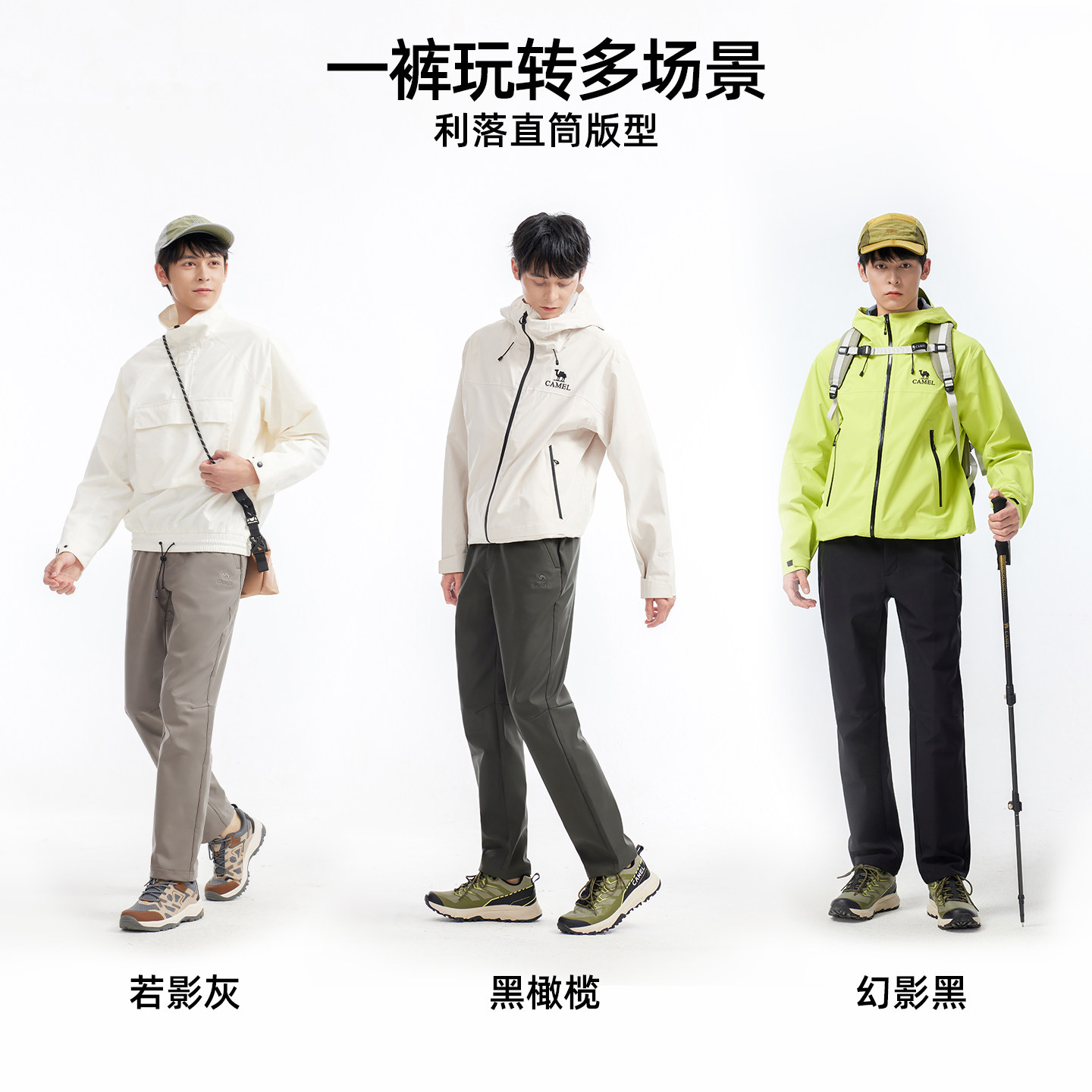 [王俊凯同款]骆驼户外冲锋软壳裤男防风耐磨加绒工装长裤伞兵裤女