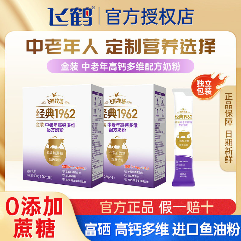 飞鹤牧场金装中老年高钙多维奶粉富硒0蔗糖老年人成人奶粉正品