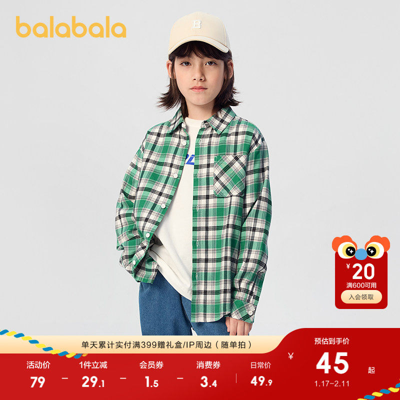巴拉巴拉儿童衬衫男童衬衣长袖春秋装女童格纹外套中大童时尚舒适