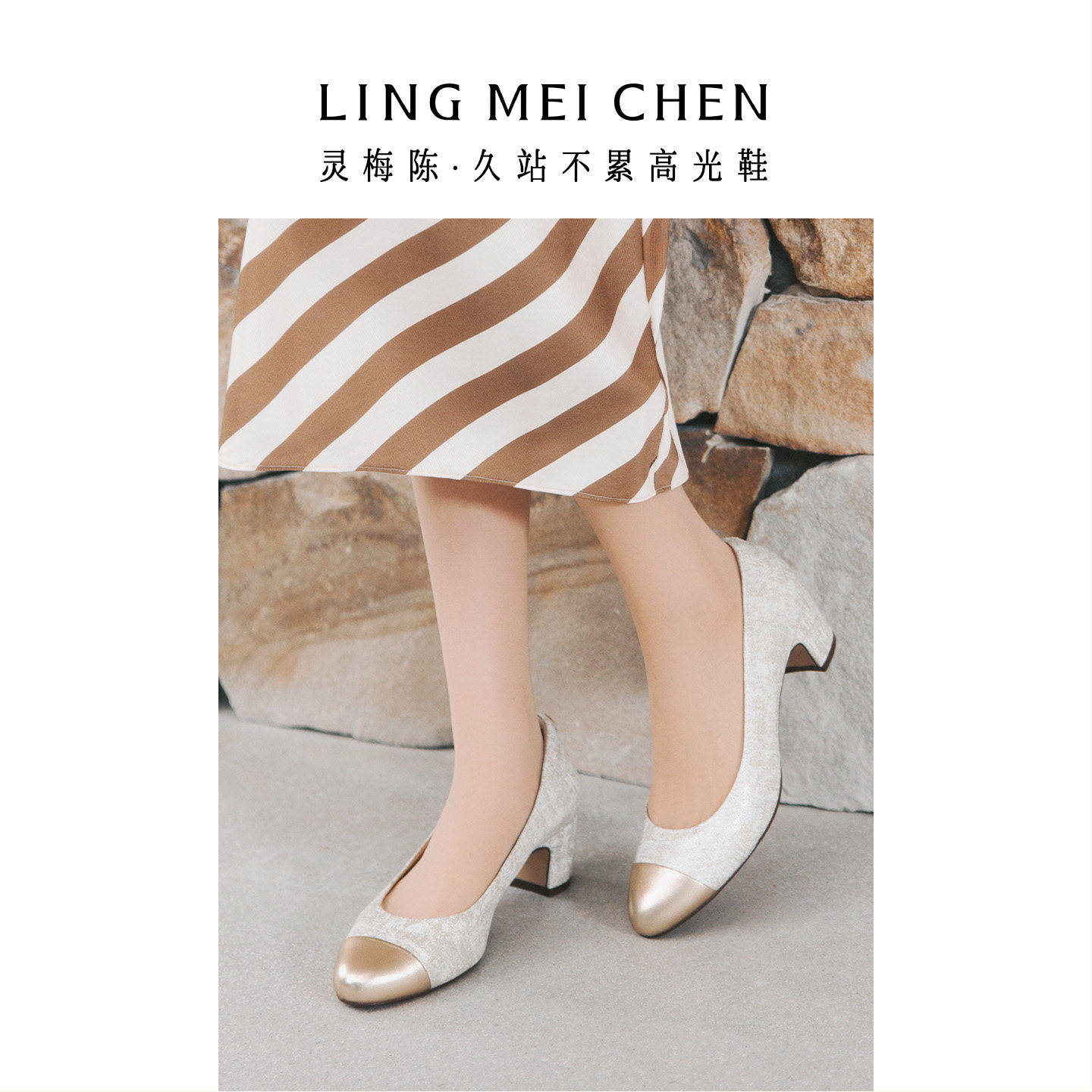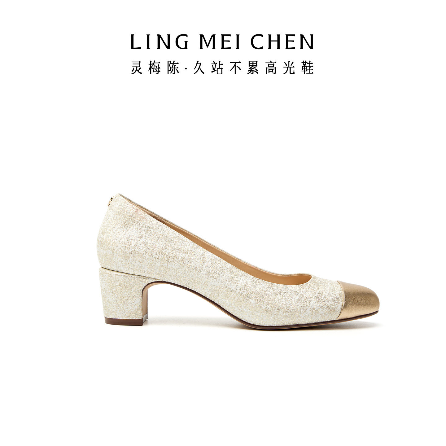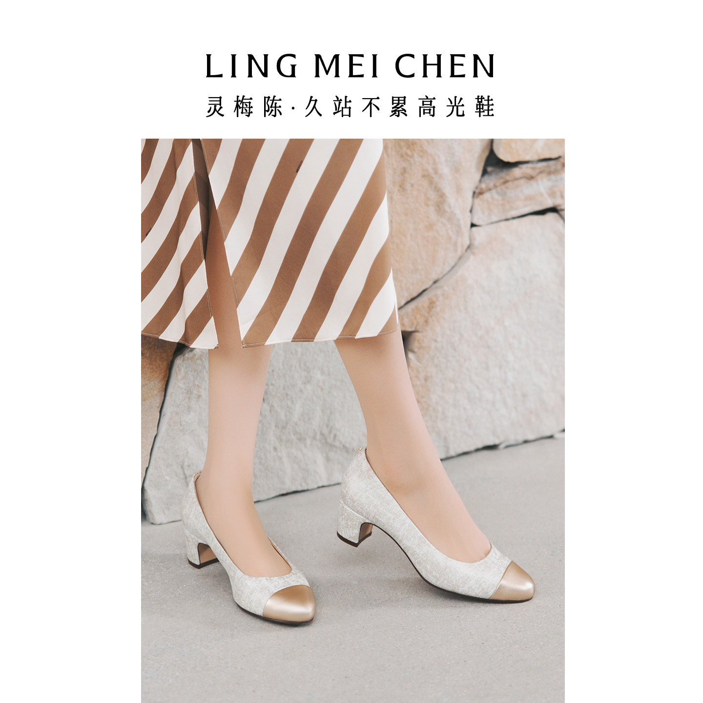 LINGMEICHEN小香风高跟鞋女2026新款圆头粗跟拼接单鞋配裙子女鞋