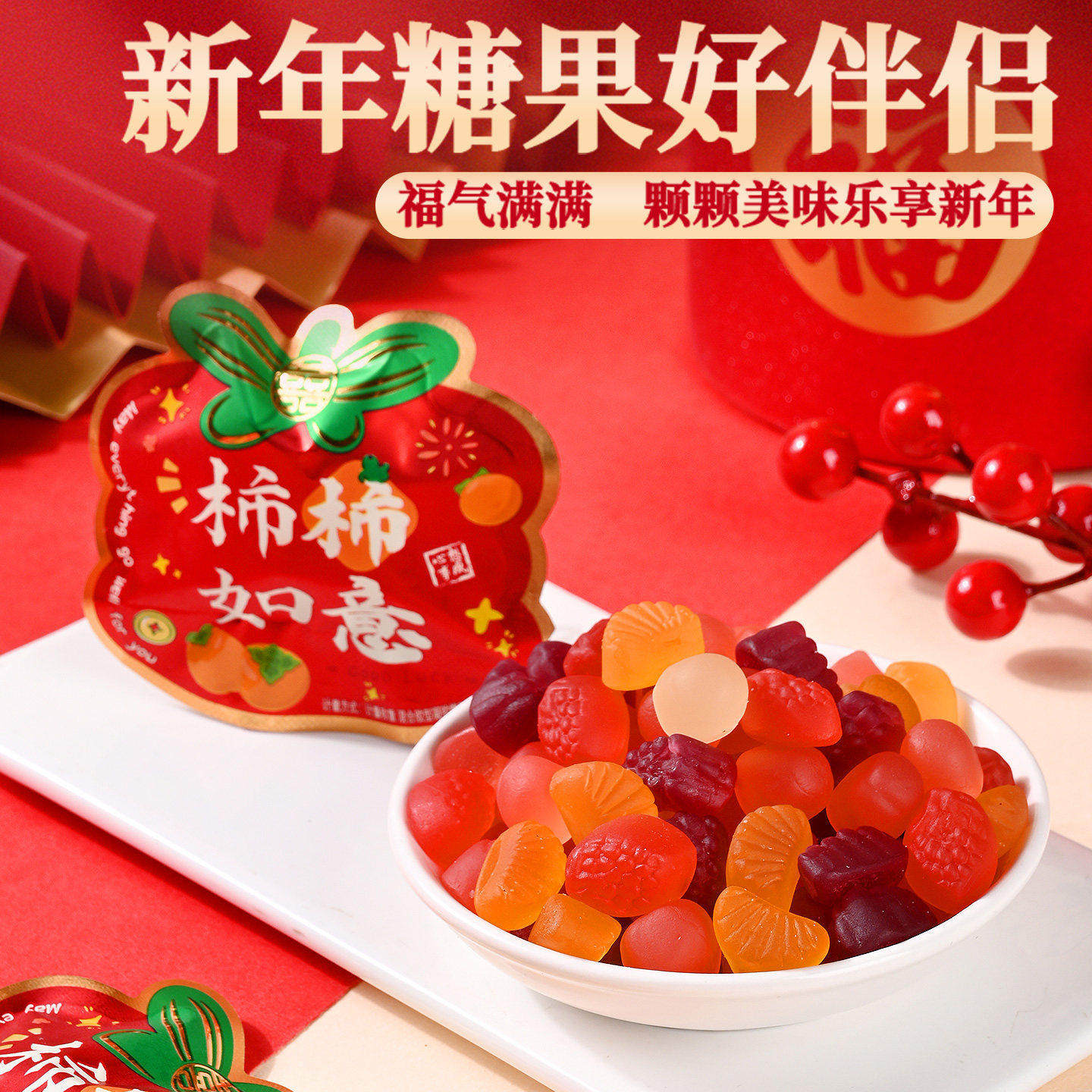 柿柿如意软糖果汁水果味混合剥皮橡皮补铁订结婚小熊年货零食批发