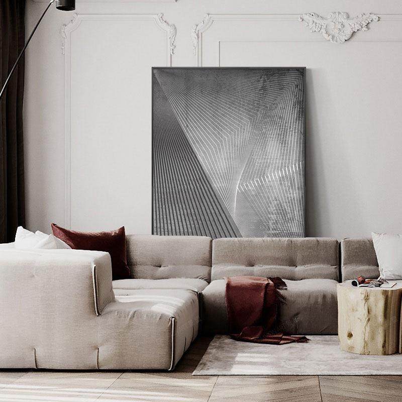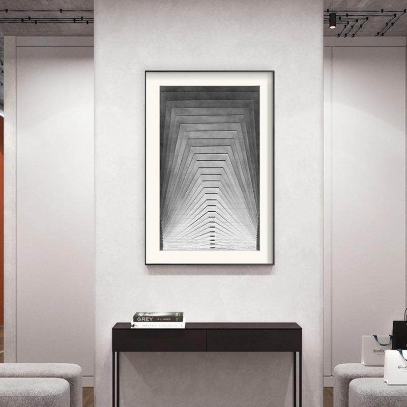 现代轻奢风装饰画工业风建筑金属艺术挂画餐厅黑白壁画线条风格画