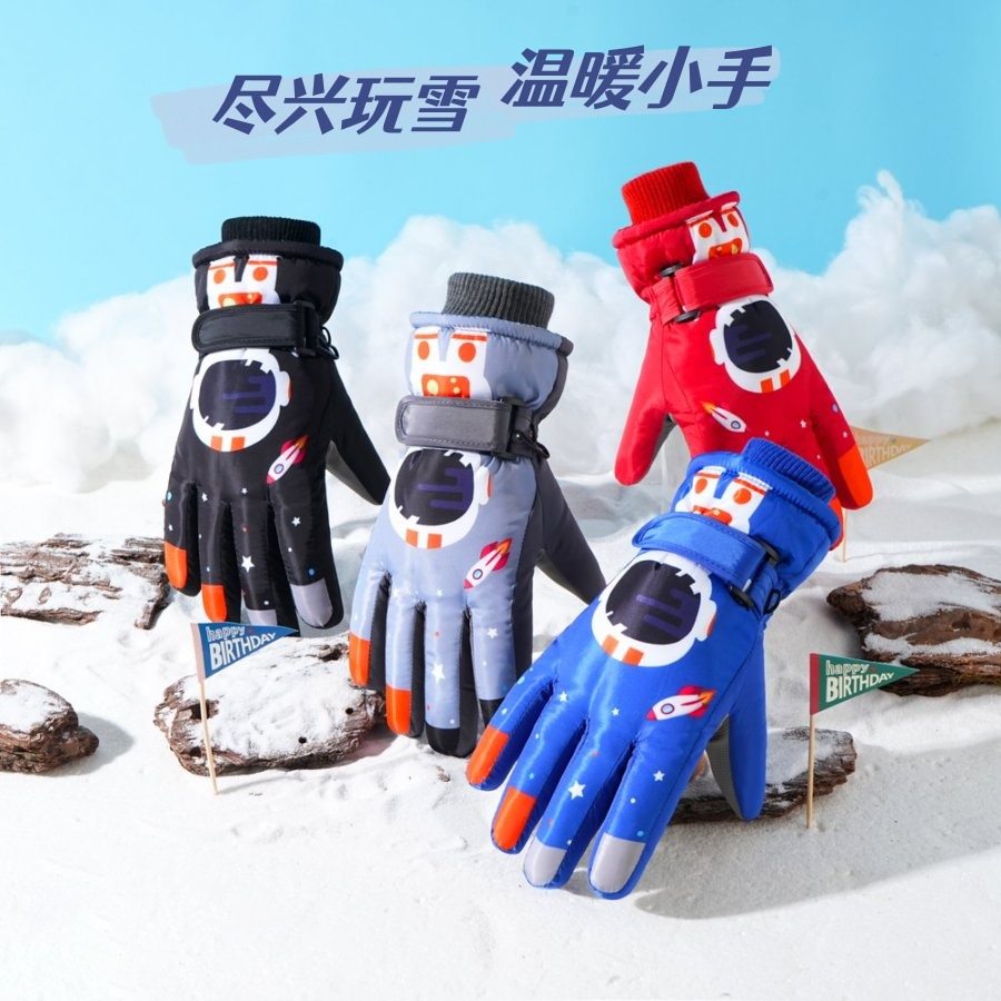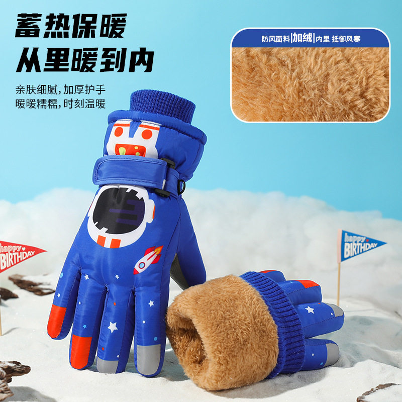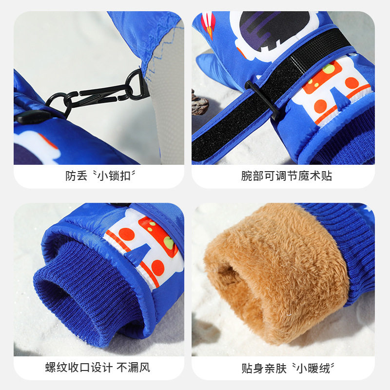 儿童滑雪手套男童3到6岁女童卡通小孩玩雪打雪仗防水加厚棉手套冬