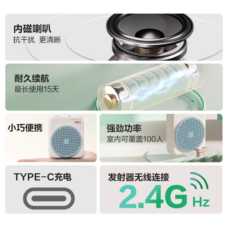 得力小蜜蜂扩音器教师上课专用无线麦克风老师讲课导游喇叭扬声器