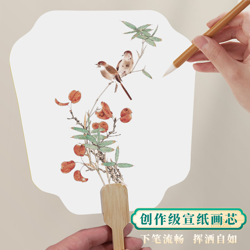 漂漆双面加厚空白宣纸团扇古风加厚扇面纸国画手绘硬卡式宫扇书法扇子手绘团扇宣纸团扇加厚纸扇面古风定制