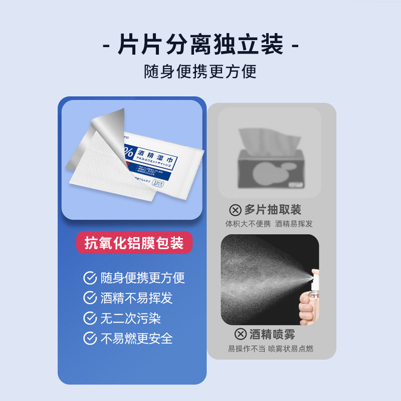 75度酒精消毒湿巾一次性小包学生杀菌大尺寸单片单独独立包装便携