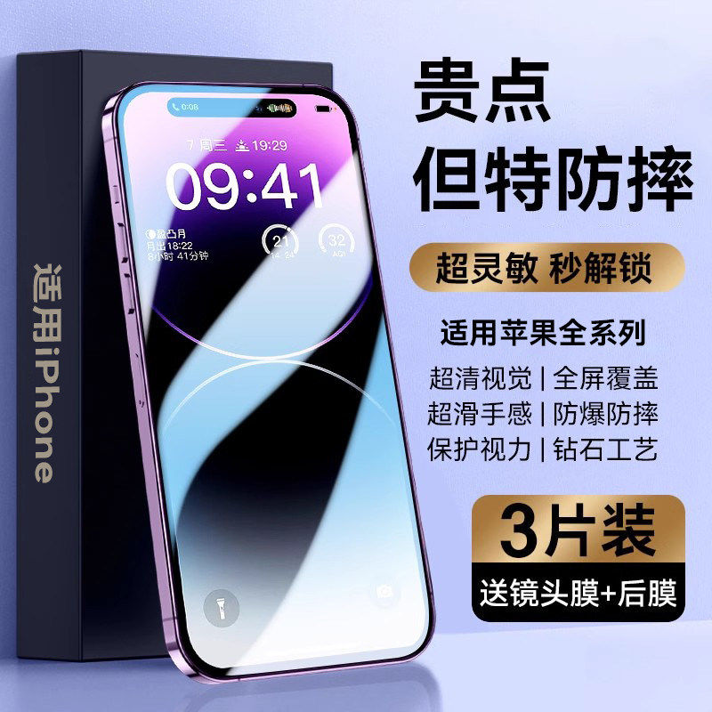 [不沾指纹]适用iPhone17/16钢化膜苹果15/14手机13promax防窥12全屏XR/xsmax全包11贴X防摔8por高清plus