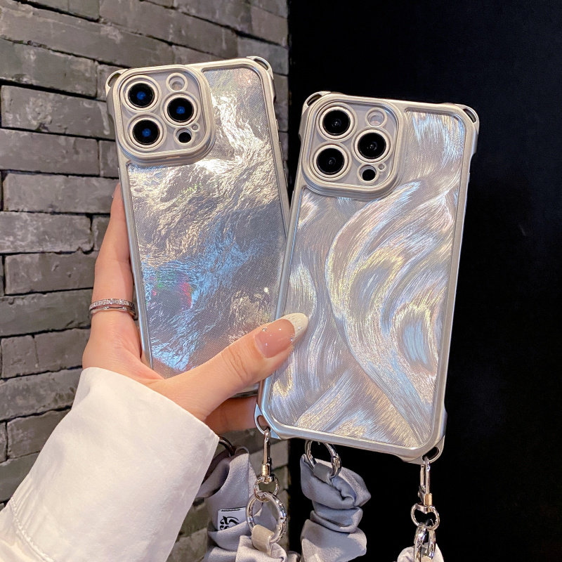 羽纱冰川纹四角可斜挂适用iPhone17pro手机壳15promax丝巾手带14手拎16苹果13高级时尚12背带斜挎11防摔女7/8