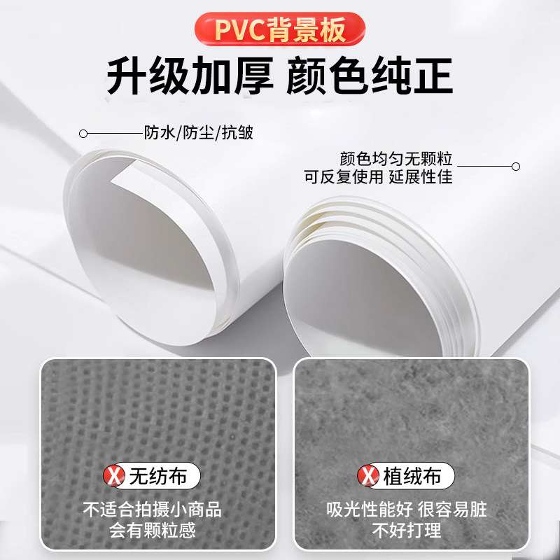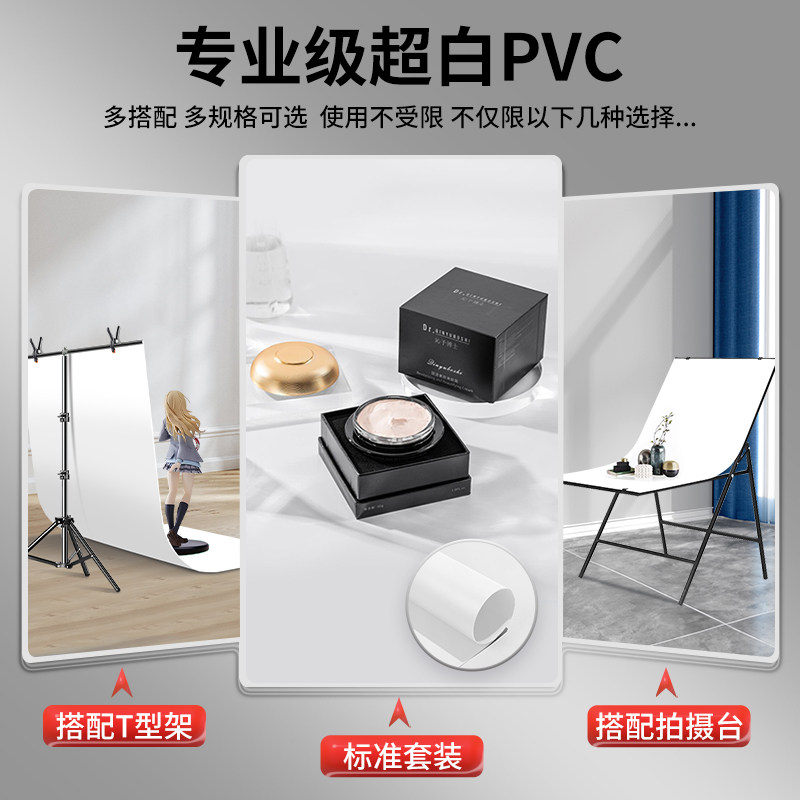 1.2米白色大尺寸磨砂PVC背景纸1.5米可定制超白背景板淘宝摄影布直播拍照道具网红摆拍纯色吸光拍摄自拍支架