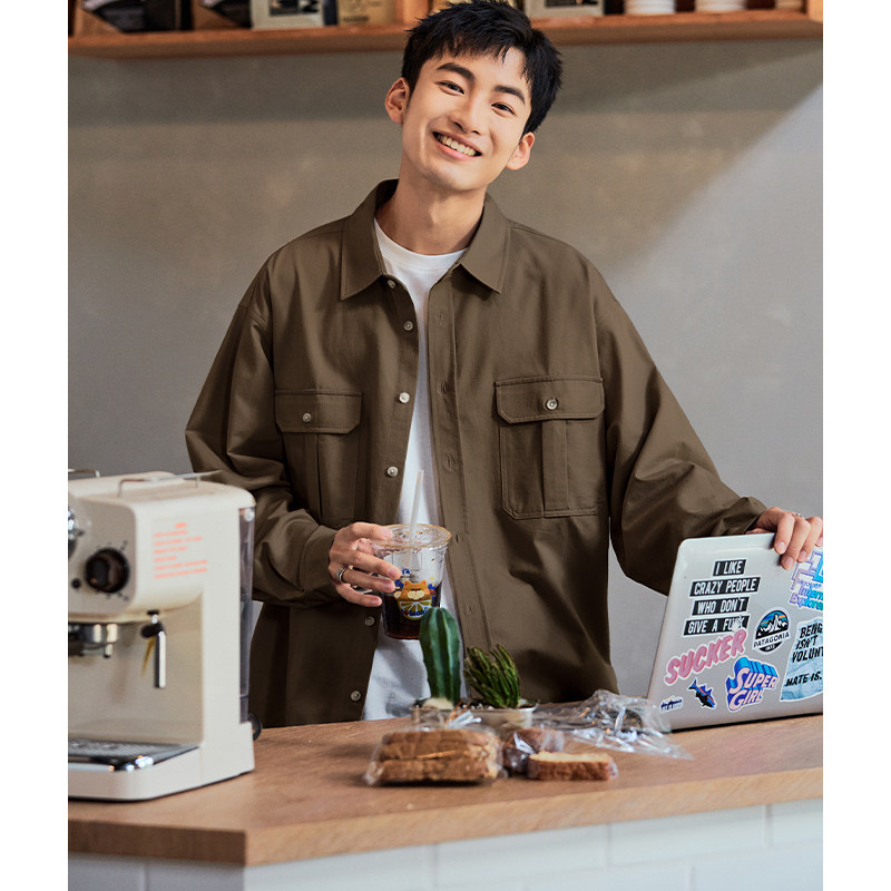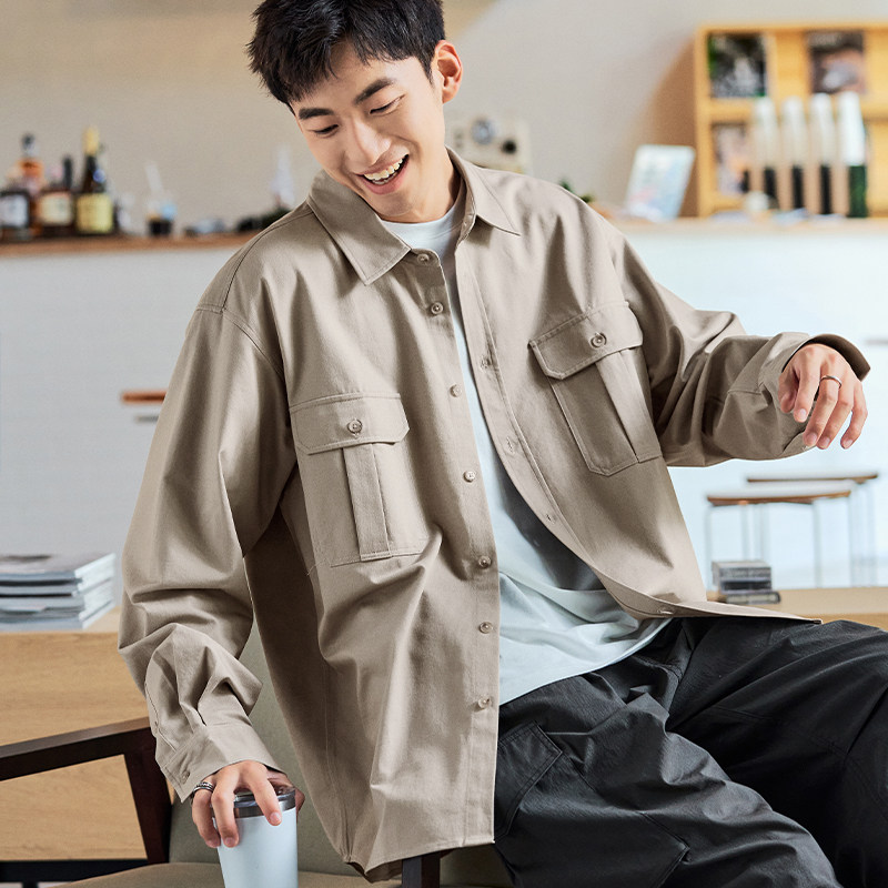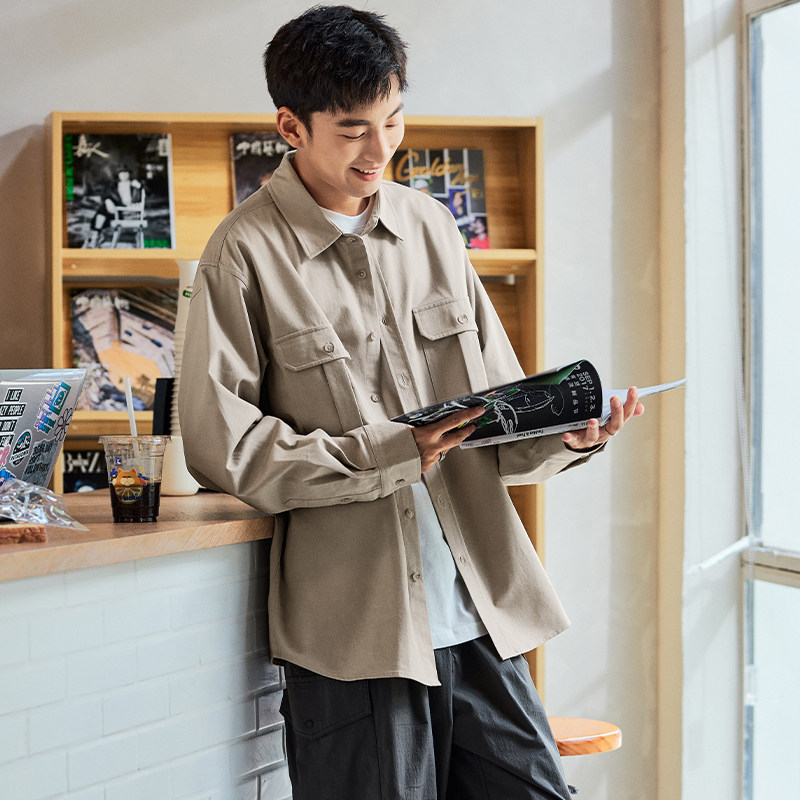 森马长袖衬衫男宽松工装外套情侣款纯色百搭上衣纯棉秋装潮酷流行