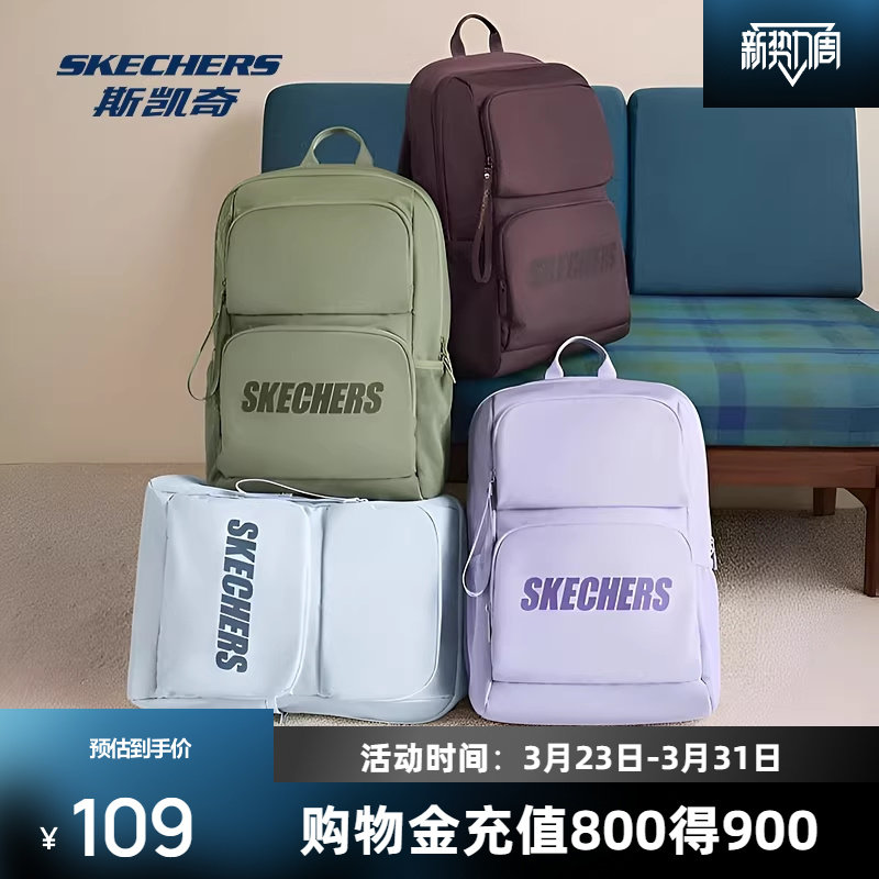 斯凯奇双肩包大容量简约旅行背包开学季百搭大学生运动休闲书包