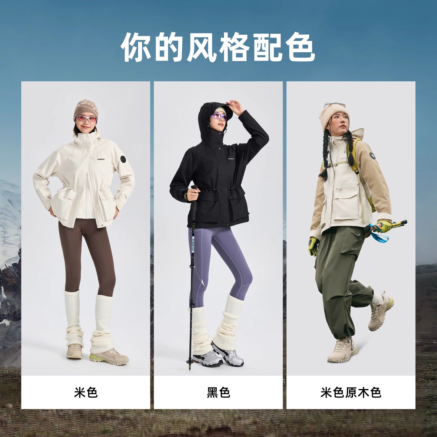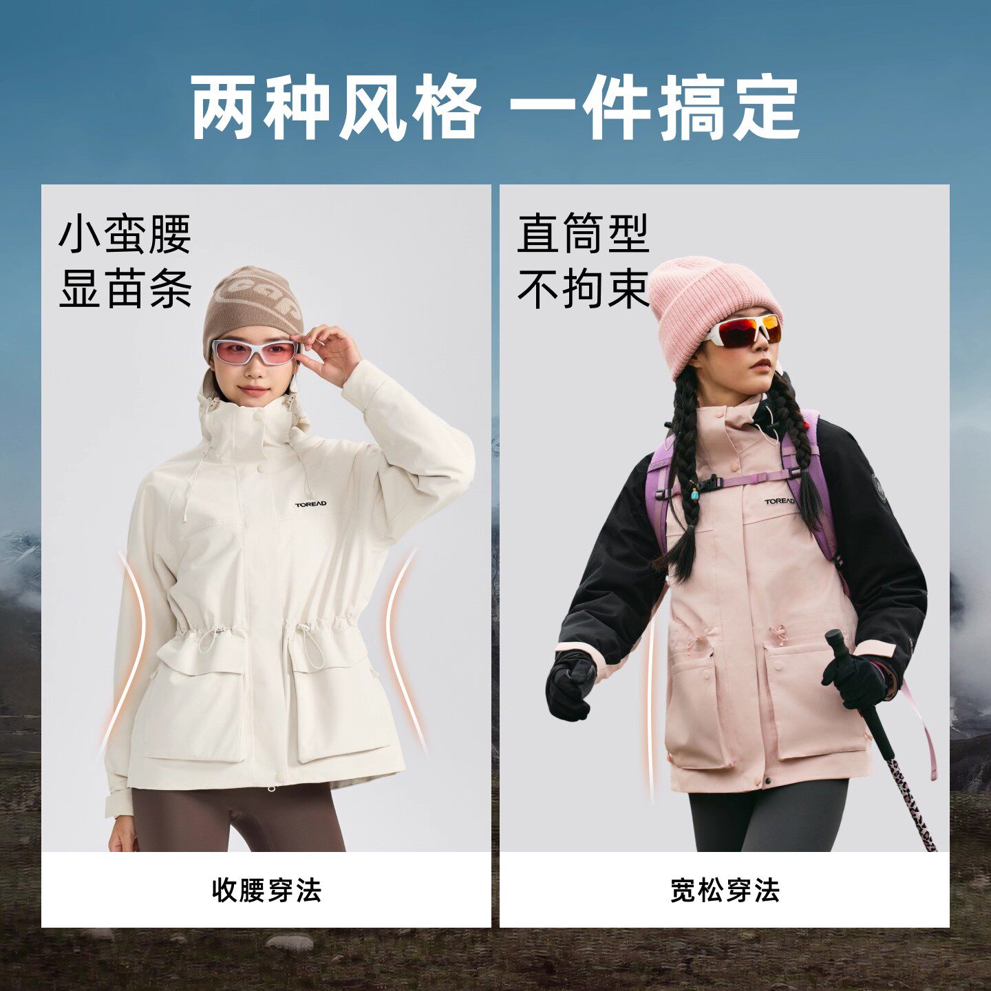 【春日粉】骆驼户外粉色冲锋衣男女款三合一鹅绒内胆羽绒服外套冬