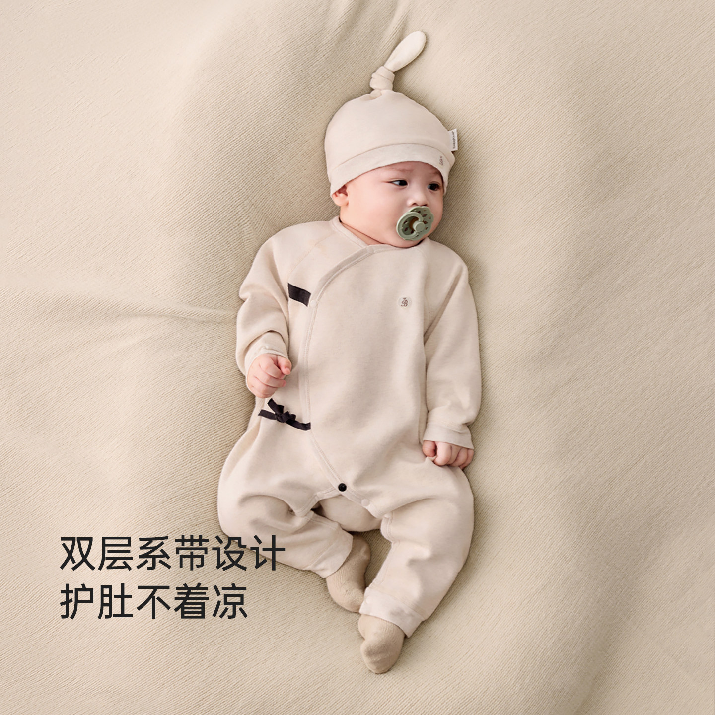 babylove新生儿连体衣春秋季婴儿睡衣系带哈衣爬服满月宝宝衣服