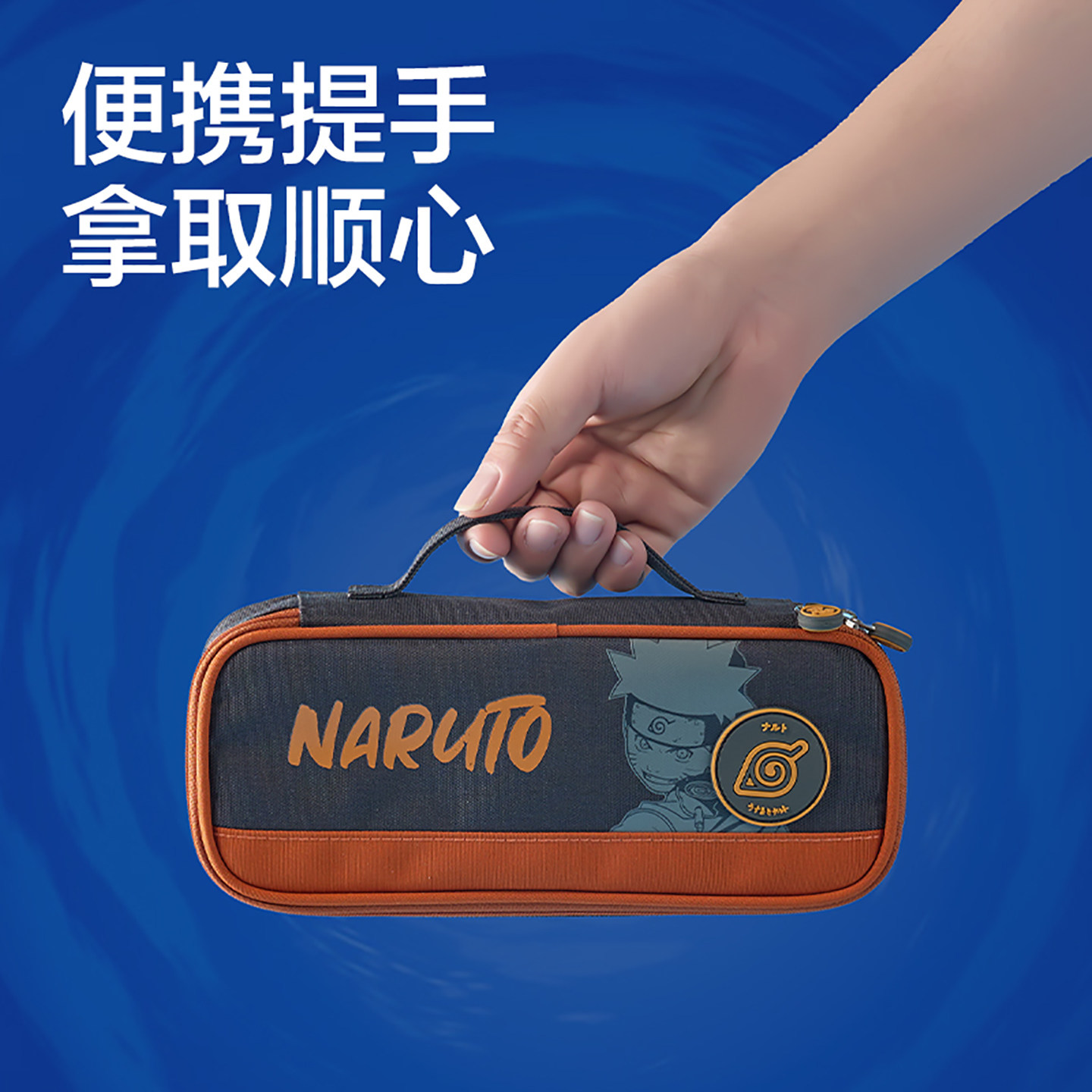 得力大容量文具盒男孩款高颜值初中生高中生鸣人铅笔盒三层分类牛津布加厚笔袋火影忍者正版联名款中小学生男