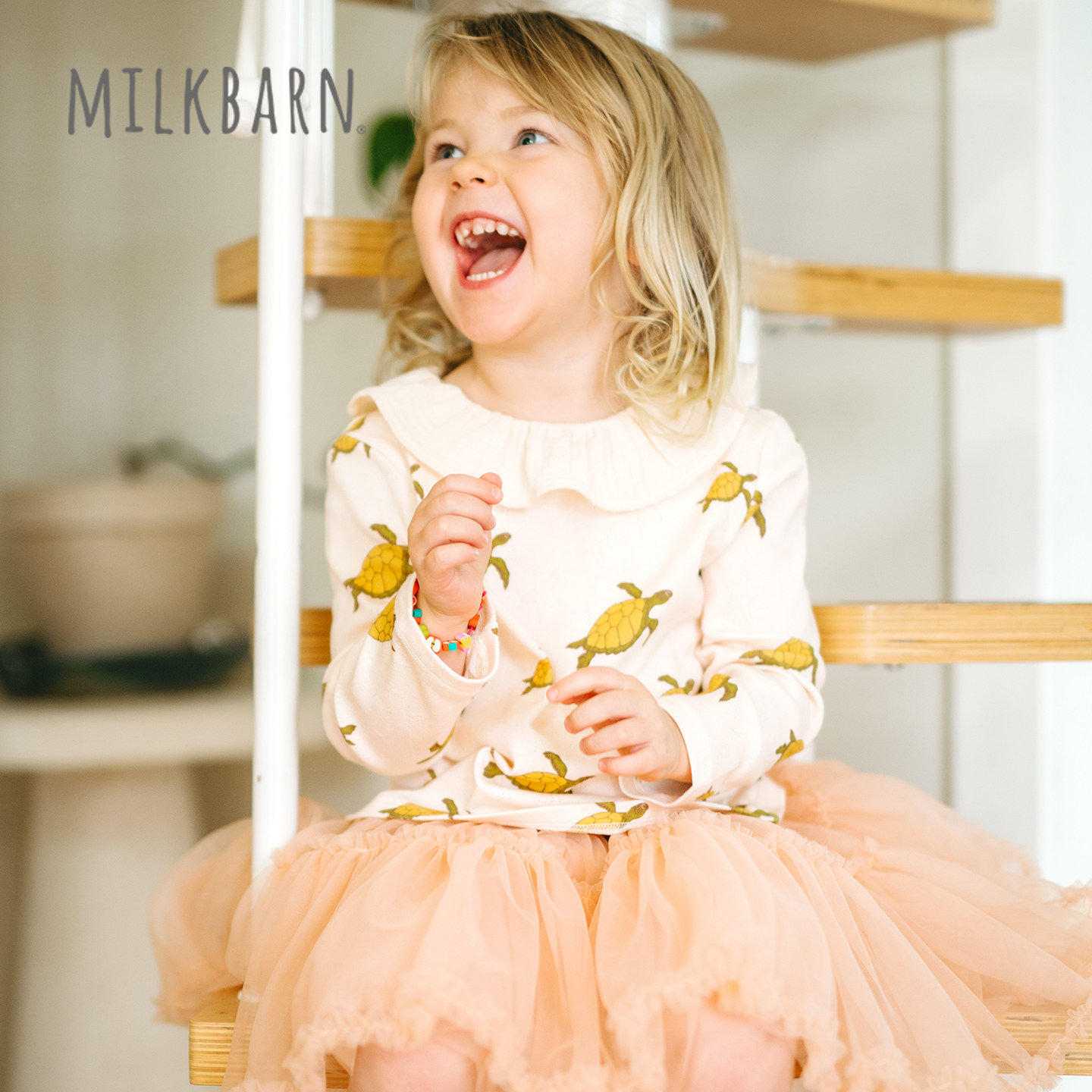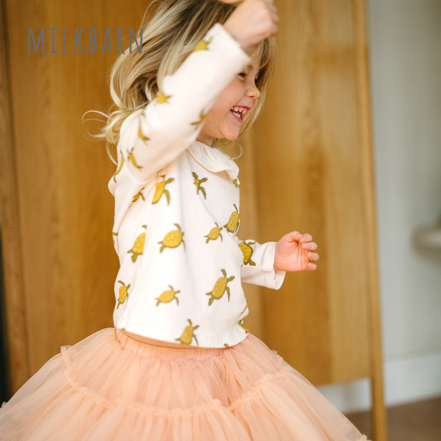 Milkbarn2026春夏新品儿童荷叶边领长袖上衣女宝宝甜美打底衫T恤