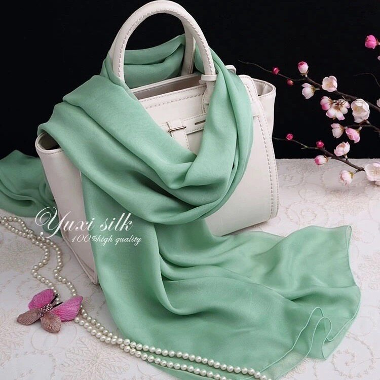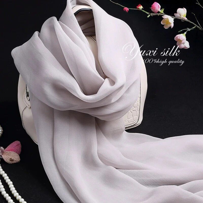 烟紫色纯色长款真丝丝巾披肩女纱巾尊贵头巾包邮丝绸围巾服饰配件