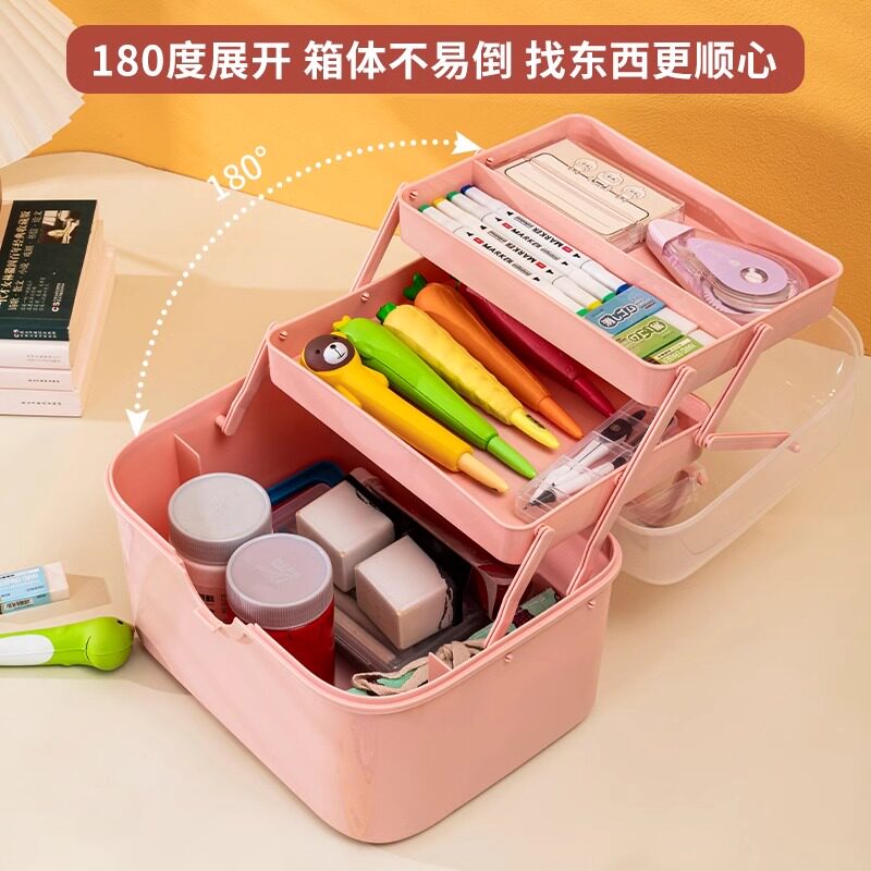 三层折叠收纳盒多功能画箱美术生工具箱超大号家用医药箱画笔颜料文具收纳箱学生专用美甲箱化妆品盒手提箱子